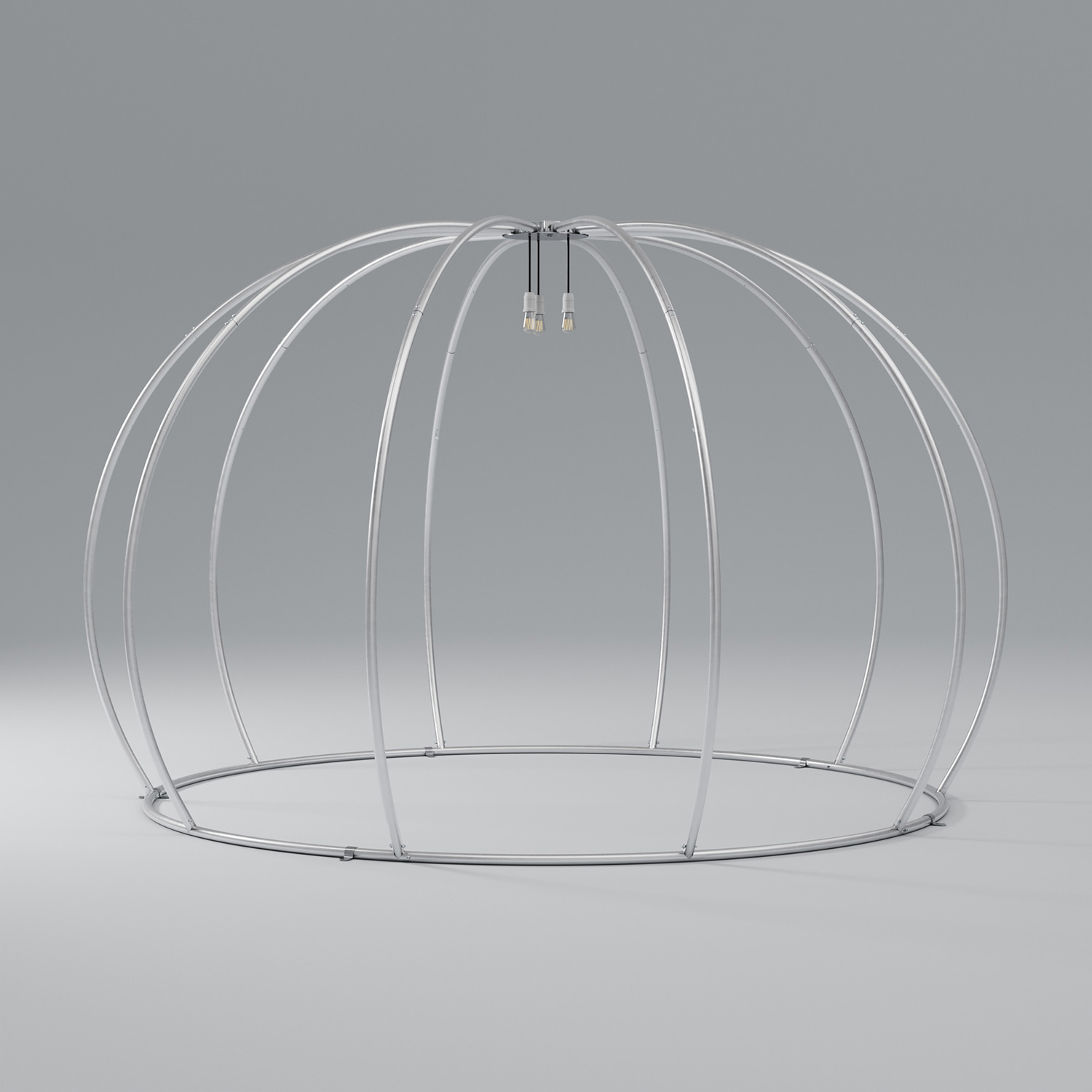 Igloo Frame Aluminium 6063 model L. READY TO INSTALL. EASY TO ASSEMBLE. No cover included. Sturdy aircraft aluminum anodized metal frame. Includes complete lighting electric system. Prepared for any decorations (20 screws + holes). Designed and manufactured entirely in US and Europe.